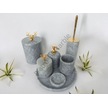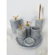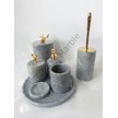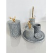 Gri Mermer Klasik Model 7 Parça Gold Renk Geyik Aksesuarlı Banyo Seti Gri