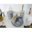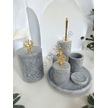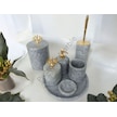 Gri Mermer Klasik Model 7 Parça Gold Renk Mercan Aksesuarlı Banyo Seti Gri
