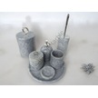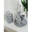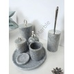 Gri Mermer Klasik Model 7 Parça Gümüş Renk Halka Aksesuarlı Banyo Seti Gri