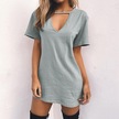 Gri Moda Kadın Rahat Kısa Kollu V Yaka Katı Bayanlar Mini Elbise Oymak
