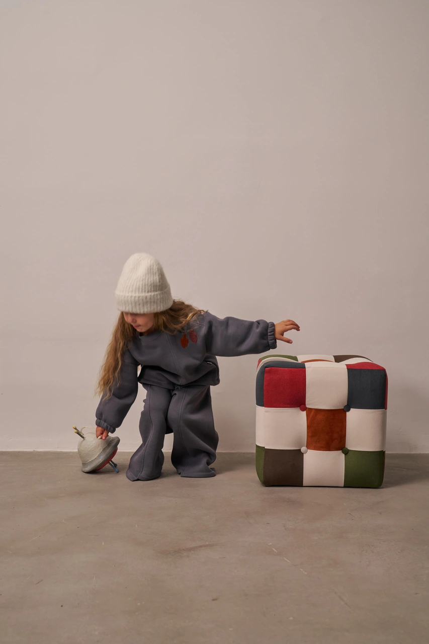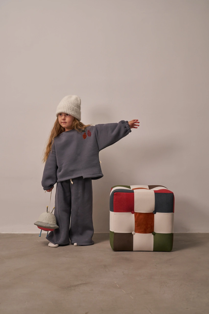 Monox Kız Çocuk Çiçek Baskılı İpli Şeritli Pantolon Fitilli Polar Takım Taş