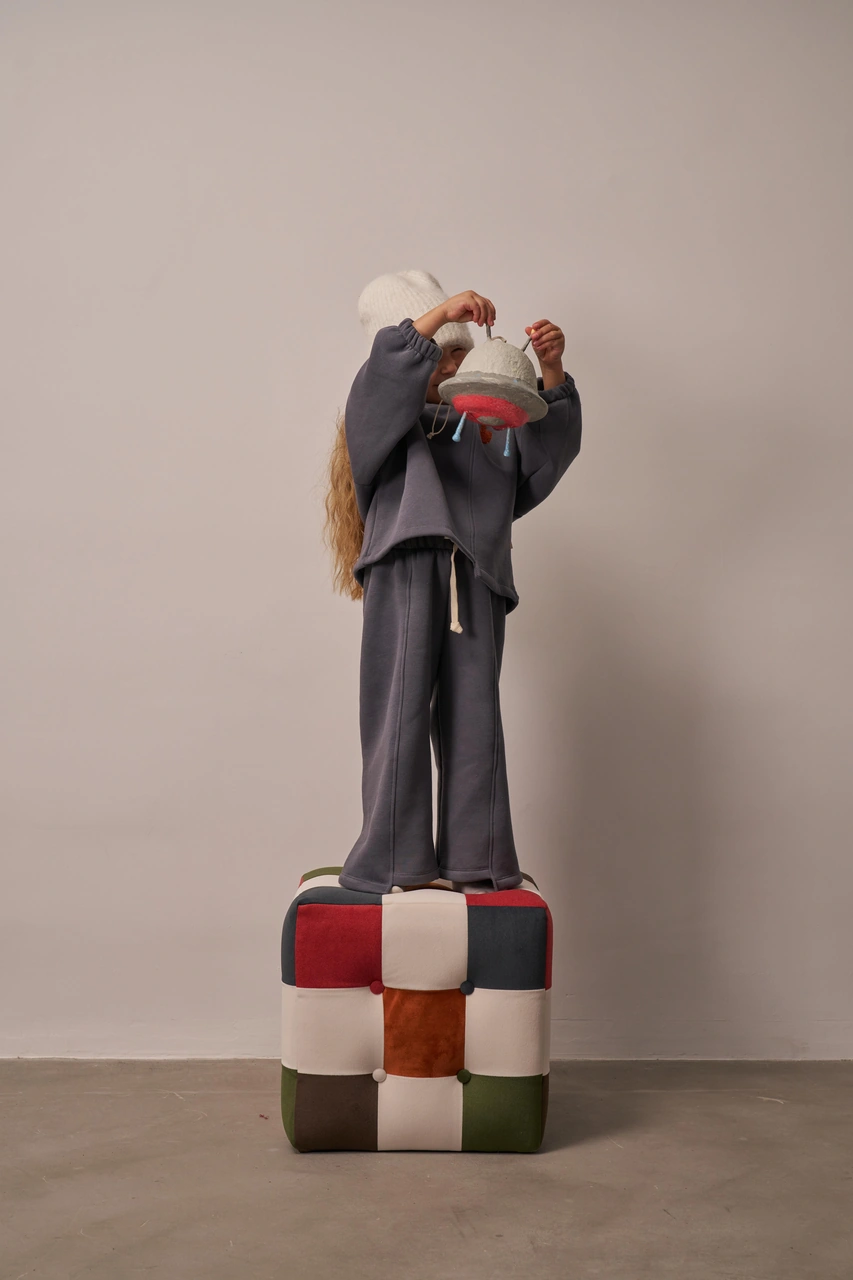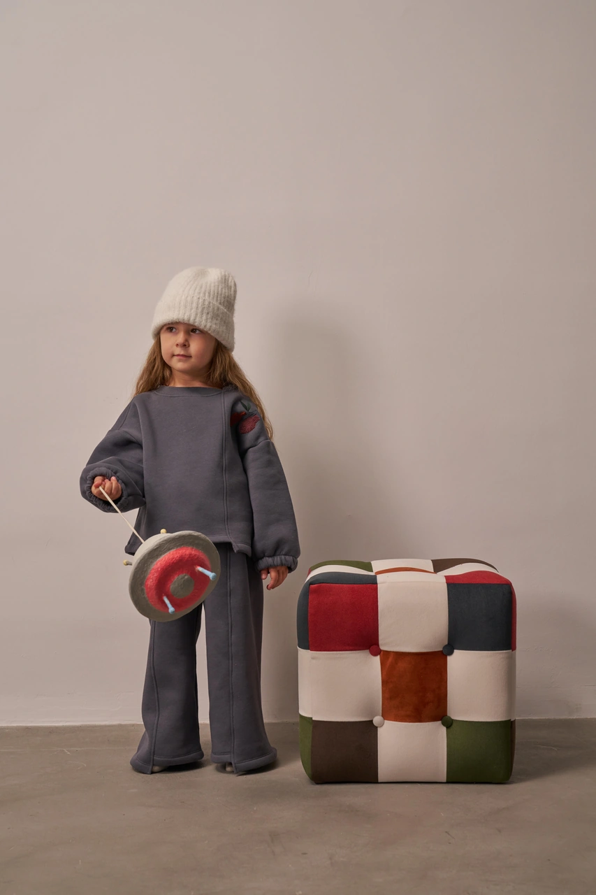 Gri Omuz Nakışlı Asimetrik Detaylı Alt Üst Takım Gri