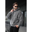 Gri Peluş Kapüşonlu Erkek Sweatshirt 6050 Gri