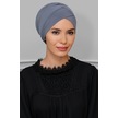 Gri Pratik Hazır Geçmeli Tesettür Bone Sandy Kumaş Çapraz Büzgülü Gri