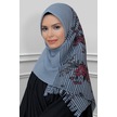 Gri Pratik Hazır Geçmeli Tesettür Eşarp Kesik Elyaf Piliseli Çiçe (545491596) Gri