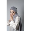 Gri Pratik Hazır Geçmeli Tesettür Şal Örme Kumaş Taşlı Çiçek Desenli 2118c 15
