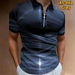 Gri Rahat Yaka T-shirt Genç Erkek Moda Fermuar Kısa Kollu Tişört Erkek 3d Kırmızı Işık Dalga Baskı T Gömlek Gri