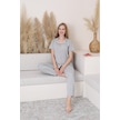 Gri Renk Biyeli Pamuklu Uzun Kol Pijama Takımı Gri