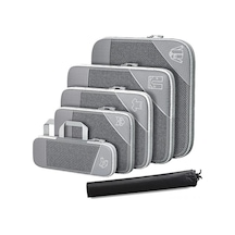 Gri Seyahat Sıkıştırma Paketleme Küpleri 6 Adet - Genişletilebilir, Ağ Desenli, El Çantası İle Kıyafetler İçin Depolama Kutusu