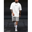Gri Şort Beyaz Tişört Takım Play Baskılı Oversize Unisex Gri - Beyaz