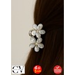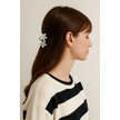 Gri Taşlı Çiçek Gümüş Detaylı Metal Mandal Toka 4 Cm Gri