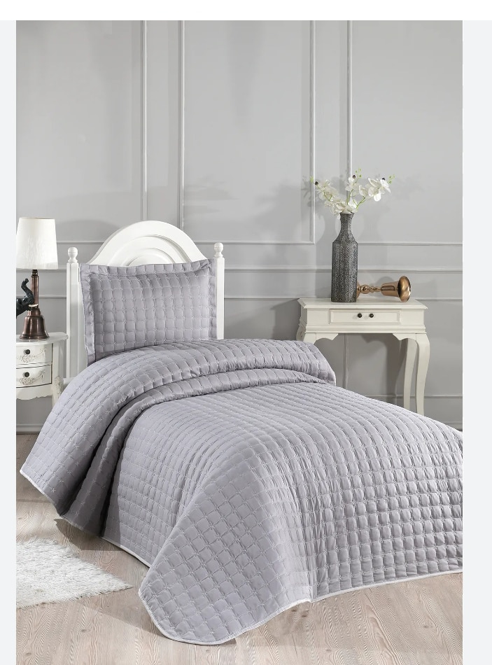 Gri Tek Kişilik Pike Çok Amaçlı Yatak Örtüsü