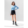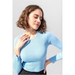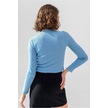 Gri Uzun Kollu Fitilli Bluz Crop Örme T-shirt Bebe Mavisi