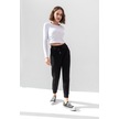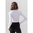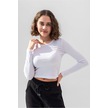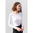 Gri Uzun Kollu Fitilli Bluz Crop Örme T-shirt Beyaz