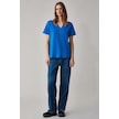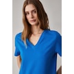 GRIMELANGE Alıne Kadın %100 Organik Pamuk Derin V Yakalı Comfort Fit Parlament Mavi T-shirt Parlament Mavi Saks Mavisi