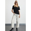 GRIMELANGE Alıne Kadın %100 Organik Pamuk Derin V Yakalı Comfort Fit Siyah T-shirt Siyah