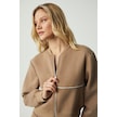 GRIMELANGE Anyul Kadın Relaxed Bomber Yaka Vizon Sweatshirt Vizon