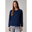 GRIMELANGE Basıl Kadını Oversize %100 Organik Pamuk Örme Uzun Kol Lacivert T-shirt Lacivert
