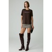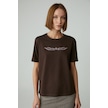 GRIMELANGE Cherıe Kadın Crop Taşlı Yuvarlak Yaka Kahverengi T-shirt Kahverengi