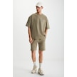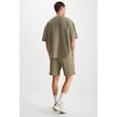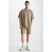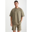 GRIMELANGE Colombıa Erkek 2'li Set Comfort Fit Rahat Kalıp Yazı Nakışlı Şardonsuz Haki Eşofman Takımı Haki