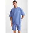 GRIMELANGE Colombıa Erkek 2'li Set Comfort Fit Rahat Kalıp Yazı Nakışlı Şardonsuz Mavi Eşofman Takımı Mavi