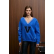 Grımelange Dıvıne Kadın V Yakalı Nakış Ve Patch Detaylı Mavi Sweatshirt Mavi