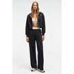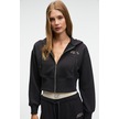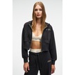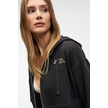 Grımelange Elara Kadın Metal Fermuarlı Nakışlı Kapüşonlu Crop Antrasit Sweatshirt Antrasit
