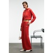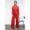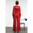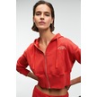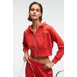 Grımelange Elara Kadın Metal Fermuarlı Nakışlı Kapüşonlu Crop Kırmızı Sweatshirt Kırmızı