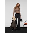 Grımelange Grıgros Kadın Esnek Kumaşlı Vücuda Oturan Slim Fit Uzun Kollu Vizon T-shirt Vizon