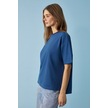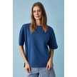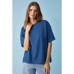 GRIMELANGE Jemmy Kadın %100 Organik Pamuk Relaxed Fit Yırtmaçlı Yuvarlak Yakalı Lacivert T-shirt Lacivert