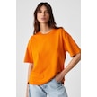 GRIMELANGE Jemmy Kadın %100 Organik Pamuk Relaxed Fit Yırtmaçlı Yuvarlak Yakalı Turuncu T-shirt Turuncu