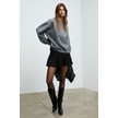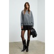 Grımelange Karıus Kadın Organik Pamuklu İçi Polarlı Oversize Yuvarlak Yakalı Gri Sweatshirt Gri