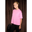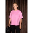 Grımelange Lagertha Kadın %100 Organik Pamuklu Kalın Dokulu Oversize Fit Yuvarlak Yakalı Pembe T-shi Pembe