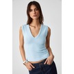 GRIMELANGE Lescosa Kadın Slim V Yaka Kolsuz Mavi T-shirt Mavi