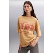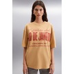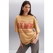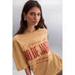 GRIMELANGE Malıka Kadın %100 Organik Pamuklu Şehir Tema Baskılı Oversize Bisiklet Yaka Bej T-shirt Bej