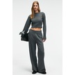 Grımelange Marıposa Kadın Yuvarlak Yaka Çizgi Desenli Crop Geniş Paça Triko Antrasit Alt-üst Takım Antrasit