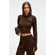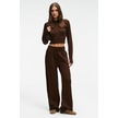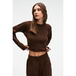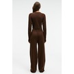 Grımelange Marıposa Kadın Yuvarlak Yaka Çizgi Desenli Crop Geniş Paça Triko Kahverengi Alt-üst Takım Kahverengi