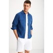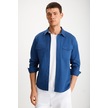 GRIMELANGE Nader Erkek Kalın Dokuma Kanvas Kumaşlı Gömlek Tipi Mavi Ceket Mavi