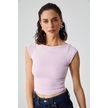 Grımelange Noemı Kadın Balerin Yaka Kısa Kol Slim Fit Ribanalı Pembe Bluz Pembe