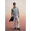 Grımelange Perttu Erkek %100 Pamuk Slim Fit Dar Kesim Düğmeli Yaka Keten Görünümlü Flamlı Gri Gömlek Gri