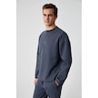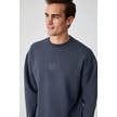 GRIMELANGE Plemon Erkek Bisiklet Yaka Uzun Kol Baskı Detaylı Oversize Gri Sweatshirt Gri