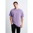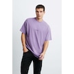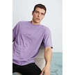 GRIMELANGE Rıver Erkek Oversize Fit Bol Kesim Nakış Işlemeli Basic Örme Mor T-shirt Mor