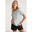 GRIMELANGE Samantha Kadın %100 Organik Pamuklu Comfort Fit Arkası Uzun Basic Örme Açık Mavi T-shirt Açık Mavi