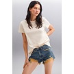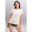 GRIMELANGE Samantha Kadın %100 Organik Pamuklu Comfort Fit Arkası Uzun Basic Örme Bej T-shirt Bej