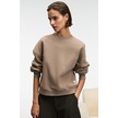 Grımelange Serenya Kadın Pamuklu Etiket Detaylı Bisiklet Yaka Vizon Sweatshirt Vizon