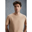 GRIMELANGE Solo Erkek %100 Organik Pamuklu Kalın Dokulu Comfort Fit Bisiklet Yakalı Bej T-shirt Bej