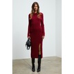 Grımelange Soreya Kadın Yuvarlak Yaka Çizgi Desenli Yırtmaçlı Slim Fit Triko Bordo Elbise Bordo