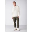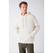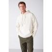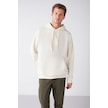 GRIMELANGE Steve Erkek Yumusaçık Kumaşlı Kordonlu Oversize Kapüşonlu Kanguru Cepli Ekru Sweatshirt Ekru