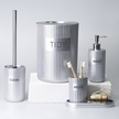 3'lü Set Beyaz Mermer Gümüş Aksesuarlı Sıvı Sabunluk, Makyaj Pamukluk, Katı Sabunluk Beyaz