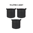 Grow Wizard Kumaş Saksı Pot 76 Litre 3 Adet Siyah